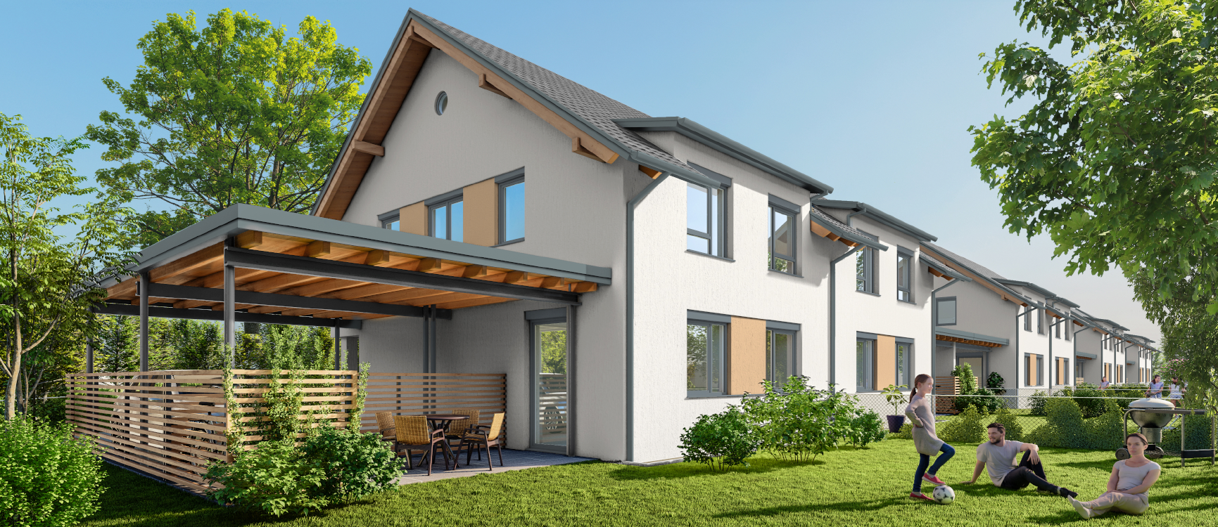 In jeder Doppelhaushälfte ist eine gemütliche Freifläche - Terrasse mit Eigengarten - vorhanden.